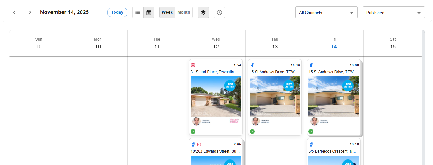 Clicking on an item in the calendar will allow you to view the post, and depending on the status perform certain functions such as re-schedule or delete a post.