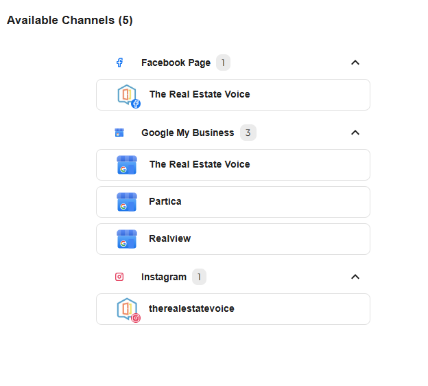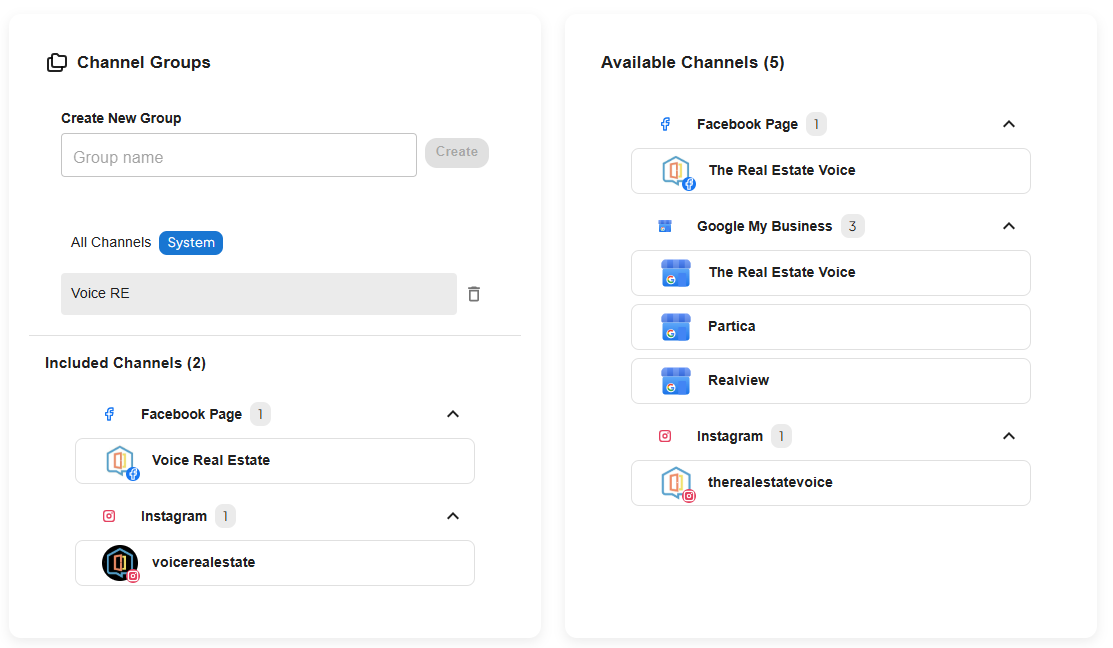 If you are a single agent or a small office and only have one Facebook page and one Instagram account, then you don't need to create a seperate group. You can just share to the "All Channels" group.